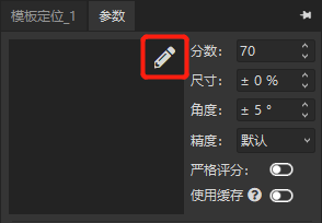 分數:對匹配到的模板相似度進(jìn)行評判,分數越高,匹配相似度的要求越高; 尺寸:可匹配的模板尺寸范圍,例如±50%,就是模板的50%~150%大小范圍內進(jìn)行匹配; 角度:可匹配的模板角度范圍,例如±180°,就是360°任意方向進(jìn)行匹配;; 精度:根據精度及速度的要求,用戶(hù)可以選擇從粗略到高的五個(gè)等級; 嚴格評分:是否對在評分中考慮丟失、遮擋或模糊的特征; 使用緩存:加速算法的執行速度,但是會(huì )占用額外的內存; 全圖檢測:用戶(hù)點(diǎn)擊如下圖所示的中ROI最大化按鈕即可。